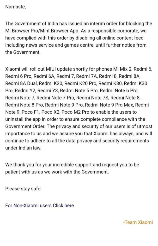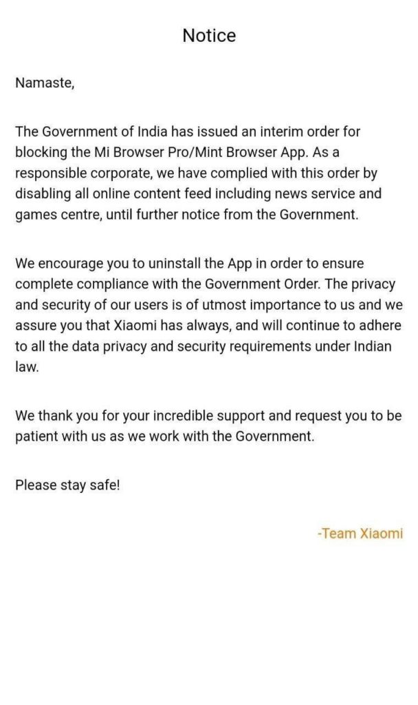 Now in a new post, Xiaomi has said that it is complying with the order by “disabling all online content feed including news service and games centre”. In another post, it has asked users to uninstall the Mi Browser app.